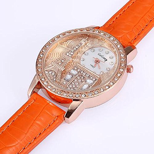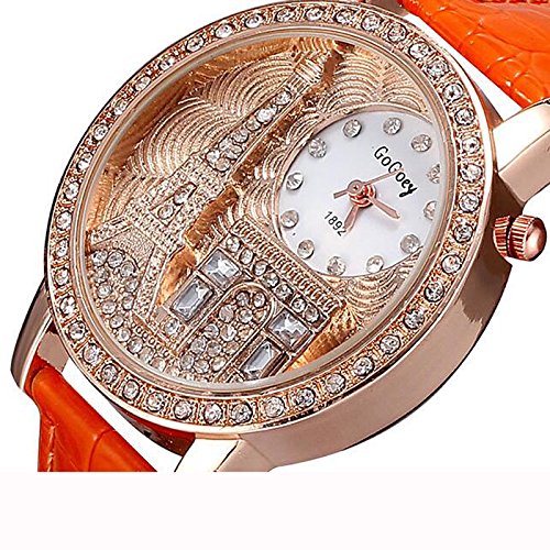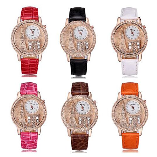 ❤Bezel Full Crystal Eiffel Tower Leather Wrist Watches for Women