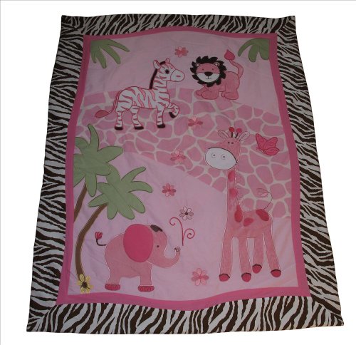 SISI Baby Girl Bedding - Pink Safari 14 PCS Crib Nursery Set Include Music Mobile