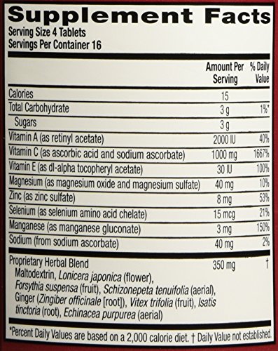 -. Binding : Health and Beauty -. Brand : Airborne -. EAN : 0647865186304 -. Feature : Vitamin c 1000mg and other antioxidants per serving support your immune system / Herbal blend with Echinacea and ginger also helps support your immune health / Excellent source of zinc, selenium, manganese and magnesium / Vitamin c 1000mg chewable formula for both men and women -. Label : Schiff Nutrition -. Manufacturer : Schiff Nutrition -. PackageQuantity : 1 -. ProductGroup : Pantry -. ProductTypeName : HEALTH_PERSONAL_CARE -. Publisher : Schiff Nutrition -. Studio : Schiff Nutrition -. Title : Airborne Vitamin C Immune Support Supplement Chewable Tablets, Berry, 64 Count -. UPC : 647865186304