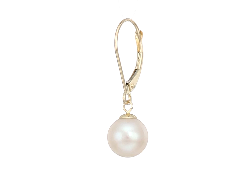 8mm Freshwater Cultured Pearl dangling from 14k Yellow Gold lever-back finding