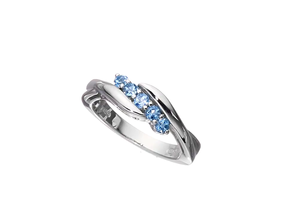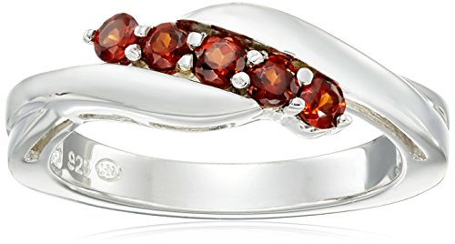 Sterling silver ring featuring five shared-prong Garnet gemstones set in bypass band