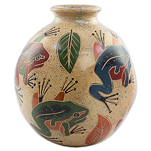NOVICA 'Jumping Frogs' Ceramic Decorative Vase
