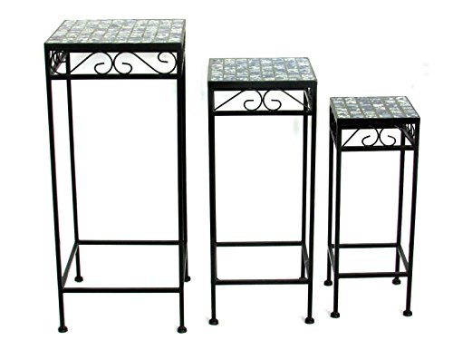 HomeView Design Cement Blue Square Mosaic Tile with Stand (Set of 3), 26"/22.5"/19", 3 Piece
