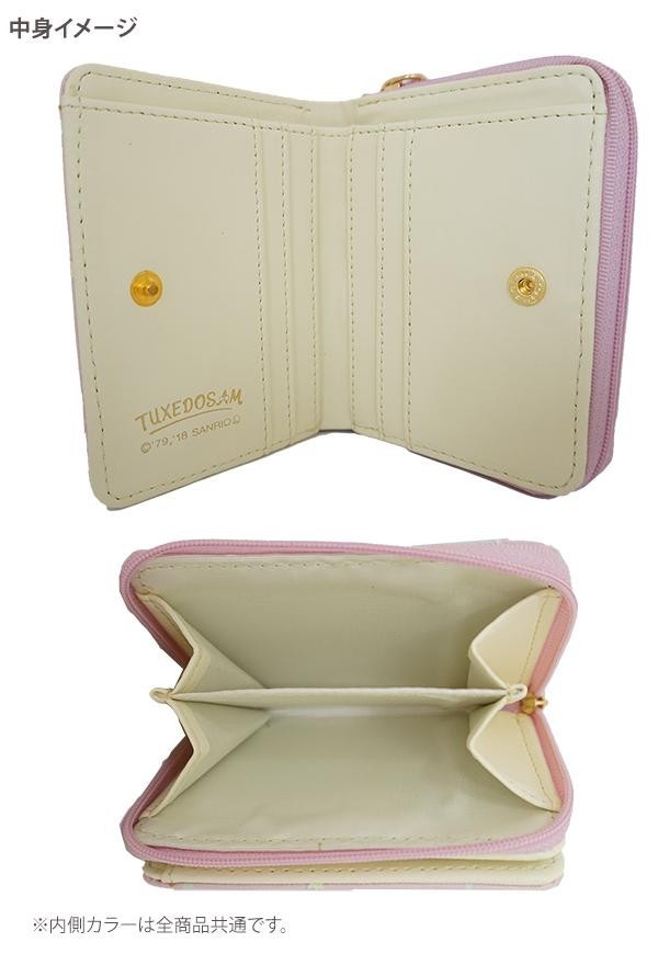 小さいカバンにピッタリのお財布。ゴールドの刺繍がオシャレ♪小さいながらも収納が充実しているので使いやすさもバツグン。 製造国:中国 素材・材質:合成皮革 商品サイズ:W110×H90×D27mm 仕様:カード収納×6札入れ×1小銭入れ(仕切り有)×1 ※サプライヤー直送品 ご注文後2~3営業日後の出荷となります【商品名】サンリオ タキシードサム 二つ折り財布 TX1-3 ブルー
