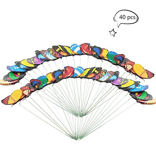 Teenitor Decorative Garden Stakes, 40pcs 12cm Butterfly Garden Stakes Garden Stake Decor Butterflies Stakes For Outdoor Yard Christmas Decorations