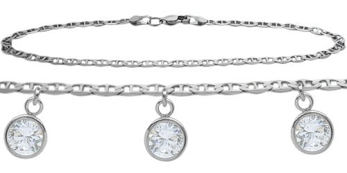 -. Title : 14K 2.55 Carat White Gold Mariner Anklet with Genuine 2.55 Carat White Topaz Round Charms