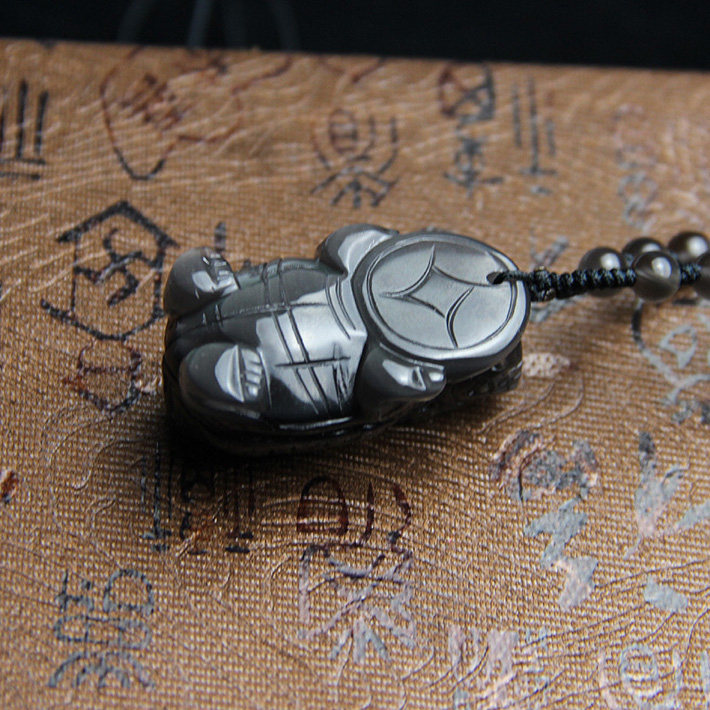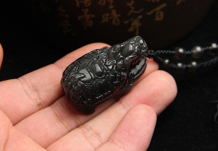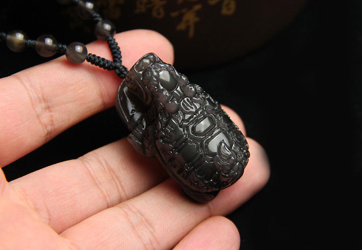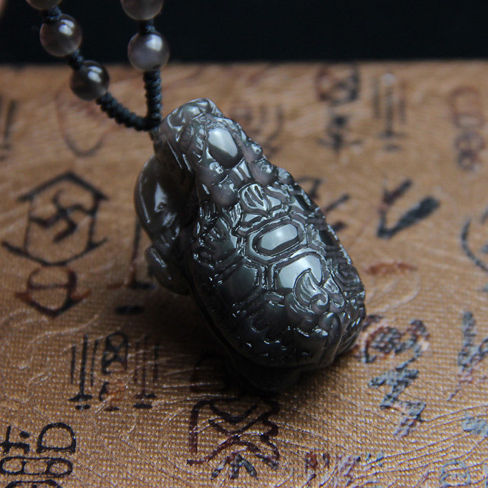 【商品名称】开光 冰种黑曜石灵龟守印属鸡吊坠开运吉祥物男女款项链