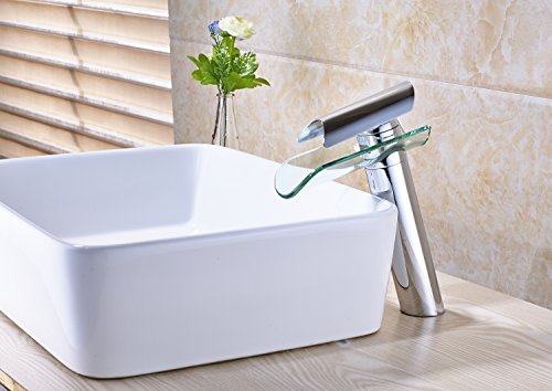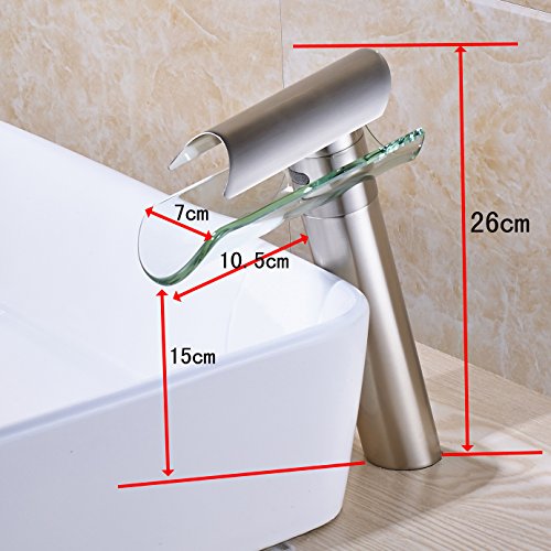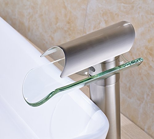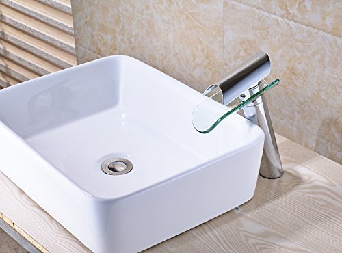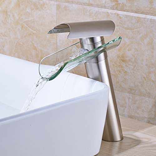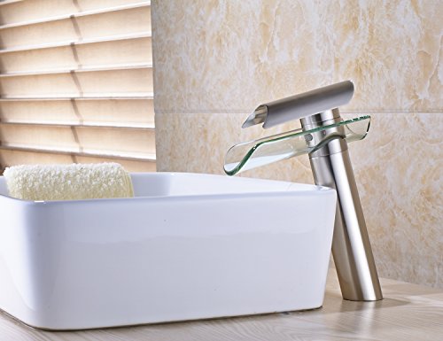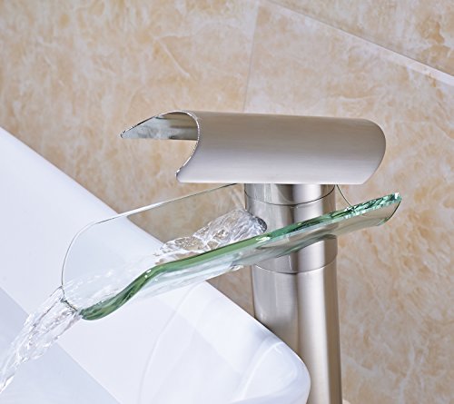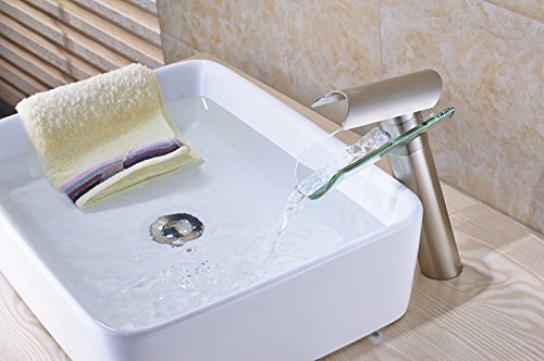 -. Brand : Rozin -. Feature : Factory direcet sales,delivery within 7-10 days / Single Hole Deck Mounted / Cold and hot water -. ProductGroup : Home Improvement -. ProductTypeName : PLUMBING_FIXTURE -. Title : Rozin Glass Spout Bathroom Sink Faucet Single Lever Vanity Basin Mixing Tap Brushed Nickel