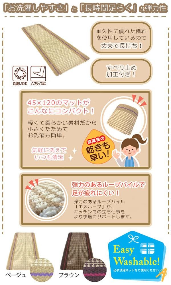 fk094igrjs軽量で弾力のある素材が特長のキッチンマットです サイズ 約45×120cm 個装サイズ:60×45×2cm 重量 約430g 個装重量:540g 素材・材質 ポリエステル100% 仕様 洗濯機洗いOK(ネット使用) タンブラー乾燥使用不可 製造国 中国 お洗濯しやすく、長時間足らく 軽量で弾力のある素材が特長のキッチンマットです