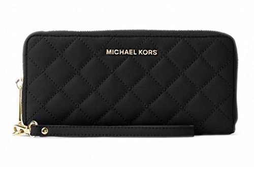 -. Brand : Michael Kors -. Color : Black -. Department : womens -. EAN : 0190049494561 -. Feature : Quilted Lamb Leather, Gold Tone Hardware / 8.25" X 4" X 0.75" / Interior Details: Inside Zip Pocket, Three Inner Pockets, Ten Card Holders / Top Zip Fastening -. PackageQuantity : 1 -. ProductGroup : Shoes -. ProductTypeName : HANDBAG -. Size : Large -. Title : Michael Kors Jet Set Travel Quilted Leather Continental Wristlet Wallet in Black -. UPC : 190049494561