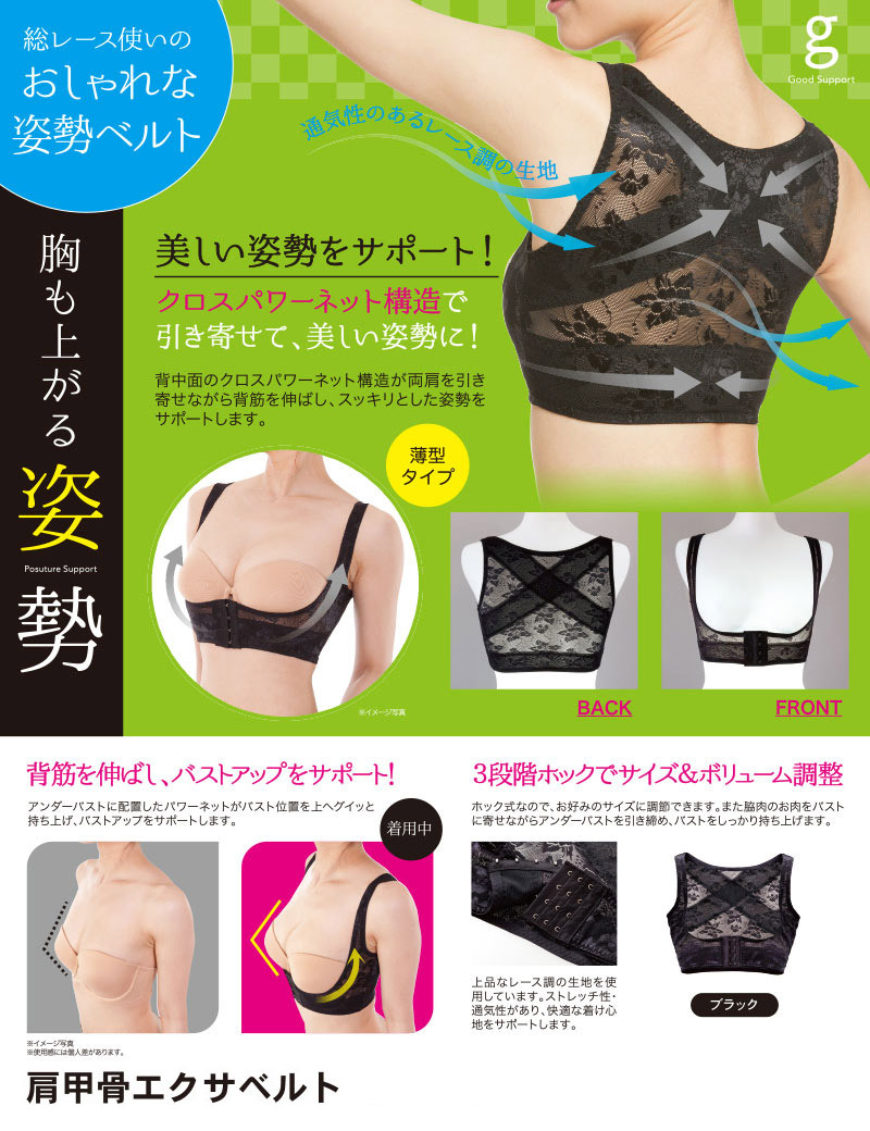 | 商品説明 | ぴったりフィットで背筋ピーン!クロスパワーネット構造が背筋を伸ばし、さらにバストアップもサポート!! |