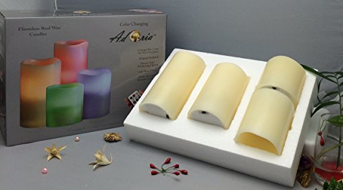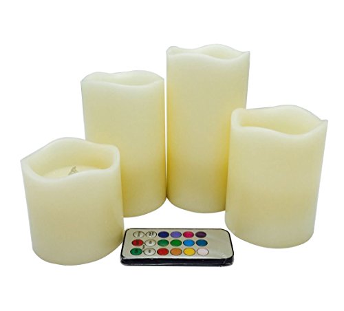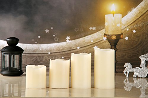 Adoria Set of 4 Flameless Candles,Auto-24Hour Timer, Ivory Vanilla Real Wax Remote Control Led Lights-,3 by tall 3",4",5",6"