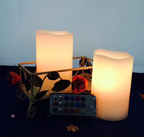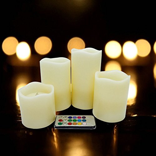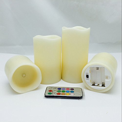 --MULTI-function REMOTE Control(Remote will works from up to 20 feet away) gives you the option to control the FLICKER, set a 4-or 8-hrs timer,Auto-Circle 24Hour timer, Swith 12- Glowing light colors to be chosen from! Also set them to rotate through the color changing automatically! The flame sits deep inside the wax Candle to give you a REALISTIC Candles without the smoke or messy dripping wax!