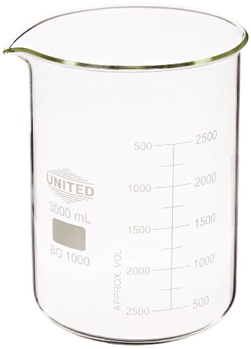 United Scientific BG1000-3000 Borosilicate Glass Low Form Beaker, 3000ml Capacity
