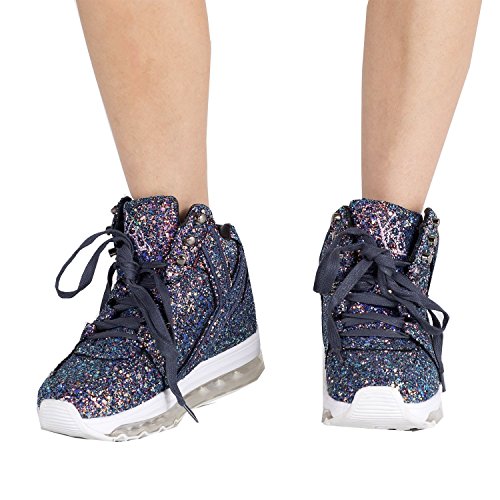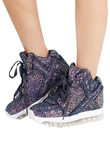 Binding : Apparel Product Description Sprinkle some stardust on your feet when you wear the Qozmo Aiire Purple Glitter sneakers by Y.R.U. These sparkly festival shoes feature a full-on purple glitter upper with dark purple lace up closure, and super comfy floating air rubber sole bottom that lights up in multiple colors such as blue, red, green. 0