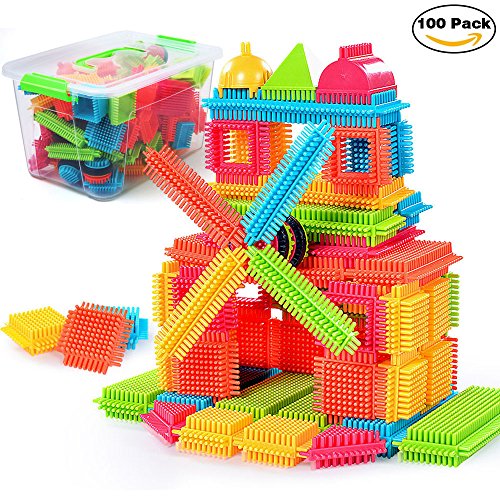 -. Title : Anwish 100pcs Bristle Blocks Set Toddlers Educational Buliding Creative Toys with a Bucket for Boys Girls