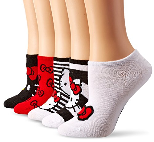 Hello Kitty Women's 5 Pack No Show Socks, Assorted Neutral/Red, Black, White, 9-11