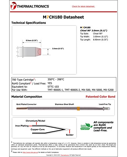 Thermaltronics M7CH180 Chisel 90deg 3.0mm (0.12") interchangeable for Metcal STTC-103