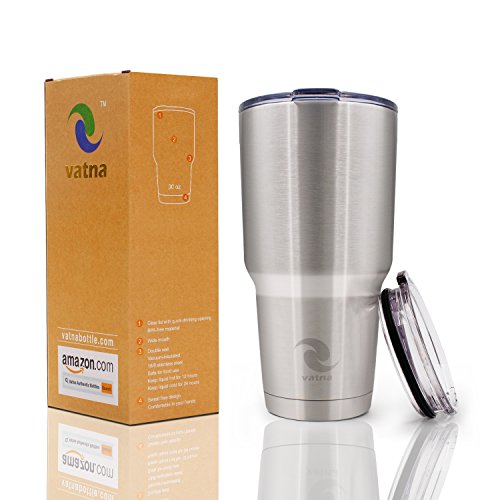Vatna Vacuum Insulated Tumbler Two Lids - Cold Insulated Tumbler with Double Wall Vacuum Travel Insulated Coffee Mug Cooler Cup, Clear Screwed Cap,Leak-proof, Perfect For Traveling