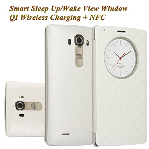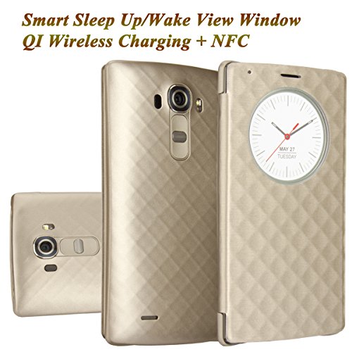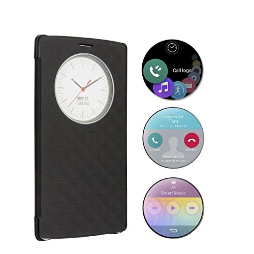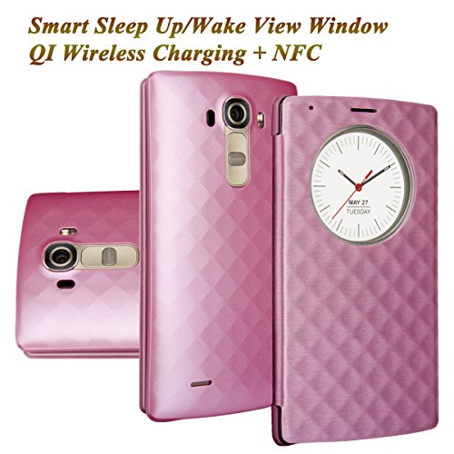LG G4 Case, Aomax Smart Quick Circle wake up/sleep view window, Wireless Charger Qi Standard Wireless Charging receiver IC Chip Attached With NFC Function Cover For LG G4 (Black New)