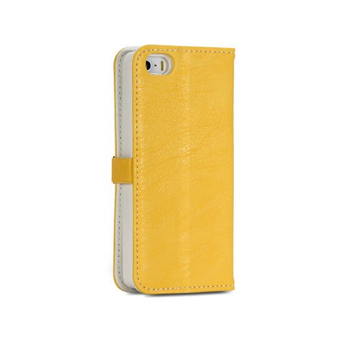 GMYLE(R) Golden Yellow PU Leather Magnetic Protective Flip Folio Slim Fit Wallet Purse Stand Case Cover for iPhone 5 / 5S / 5C (with 2 Card Slots)