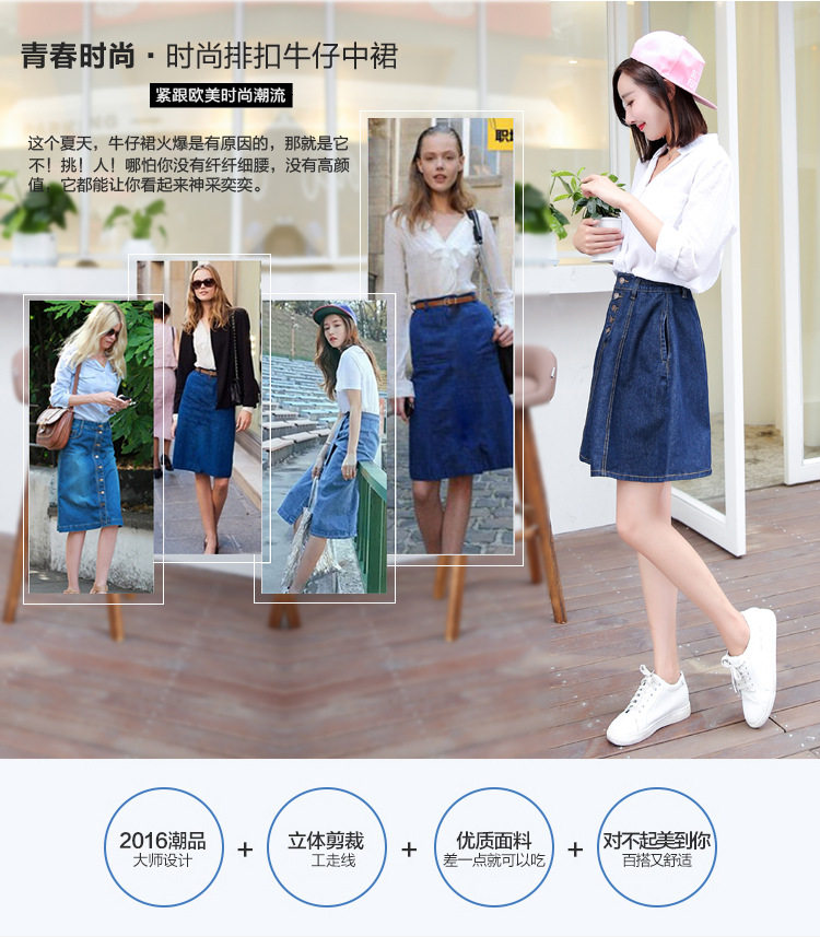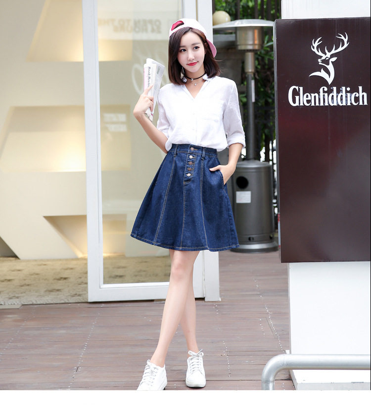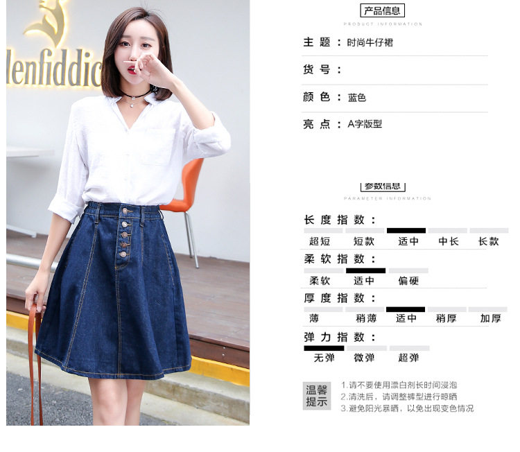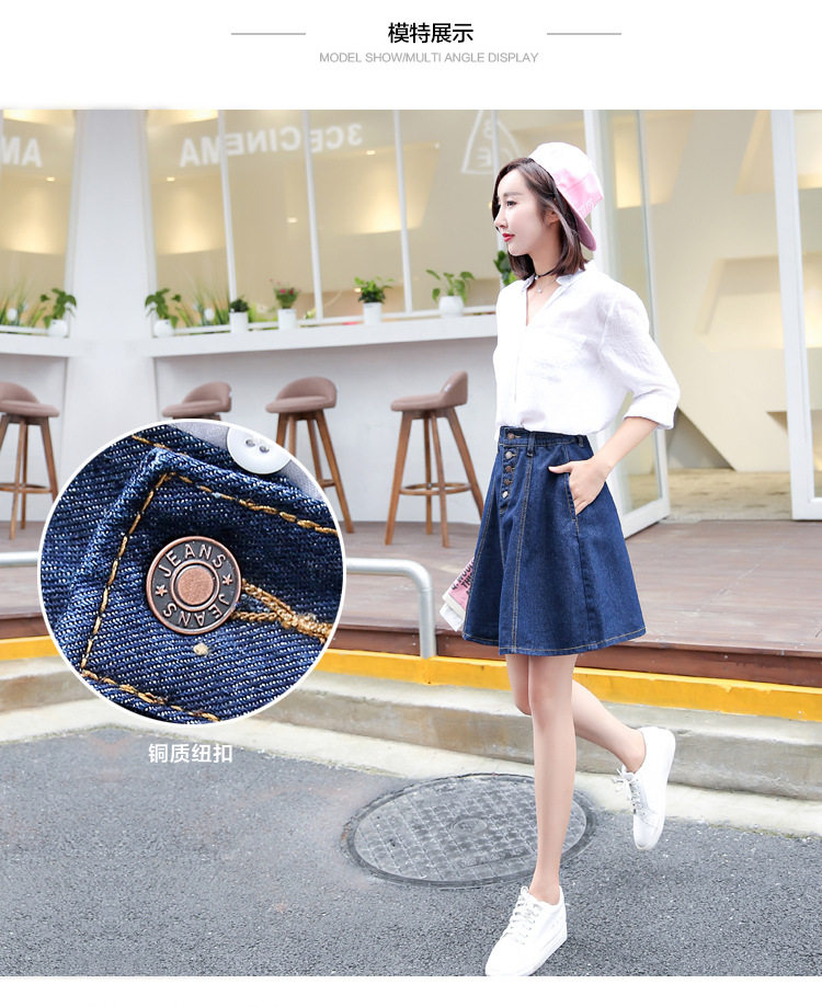 秋冬高腰松紧腰牛仔半身裙A字裙中长款大码胖MM伞裙蓬蓬裙子