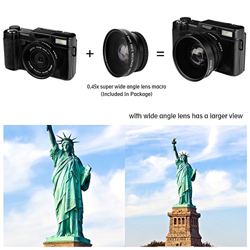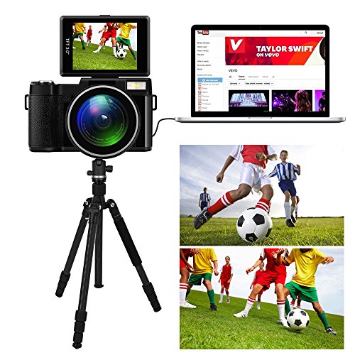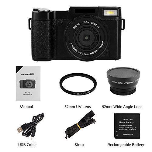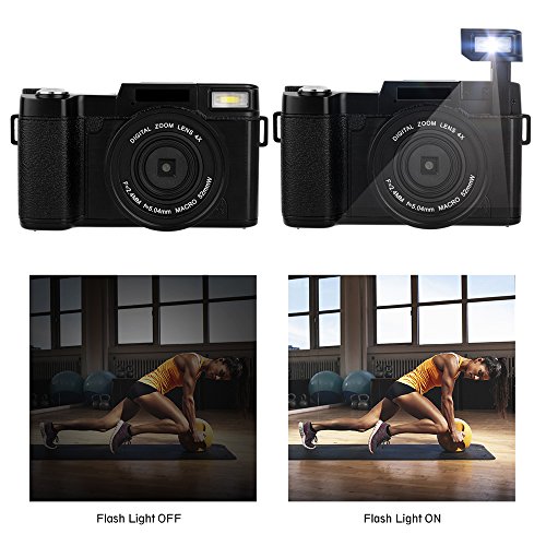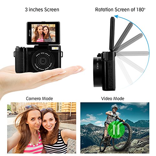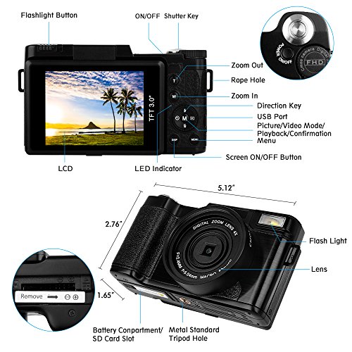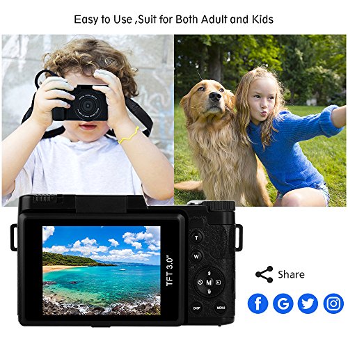 【Perfect Designed function】The 3.0 inches LCD display of digital camera is designed to be rotated 180 degree.You can see yourself for a self-snapshot.So it is a great choice as a vlogging camera.The camera build in retractable flashlight,slide the OPEN button to pop it up to illuminate larger area to help you take photo in dark place.What is more,the compact camera has anti-sharking,face detection,and white balance to help you intelligent adjust photo and video.