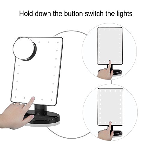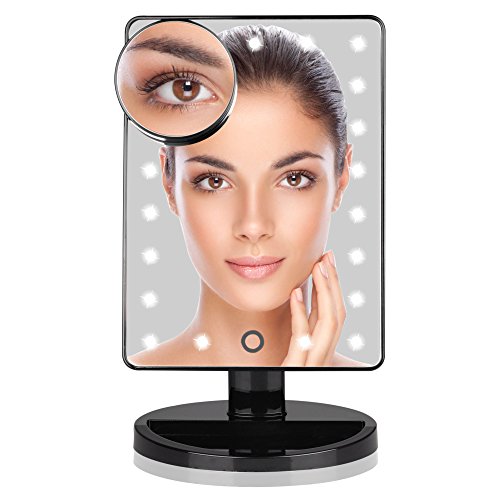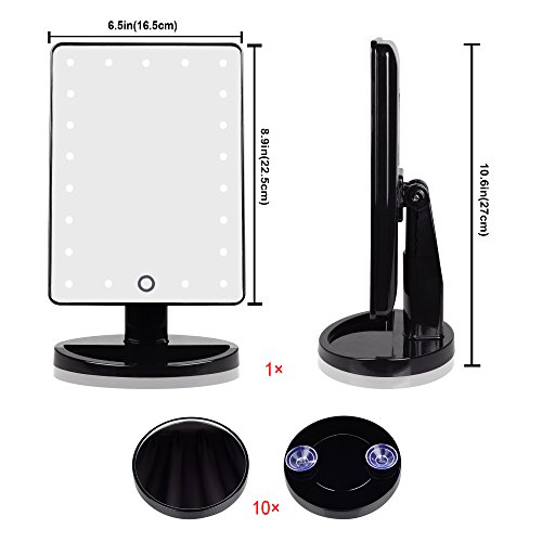 KI Store LED Lighted Vanity Makeup Mirrors Touch Screen with Portable Magnifying Spot Mirror UV Coating Battery Operated (Lighted)