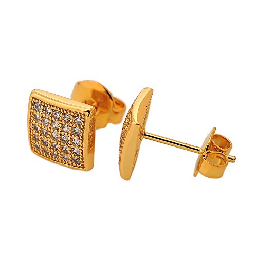 -. Title : Bala Large 8mm Square 18k Gold Plated Cz Diamond Stud Earrings for Women/men