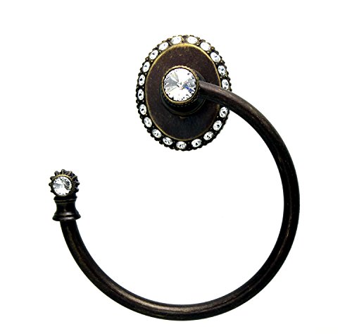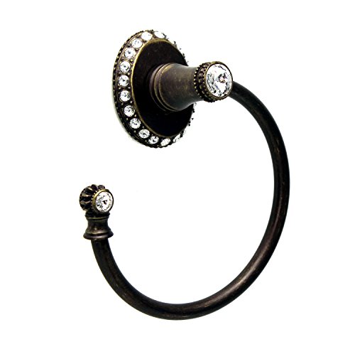 Carpe Diem Hardware 1835-3C Cache II Towel Ring Left Large Escutcheon Made with Swarovski Elements, Antique Brass