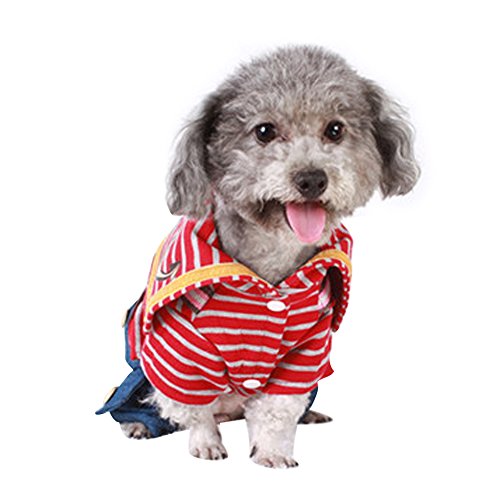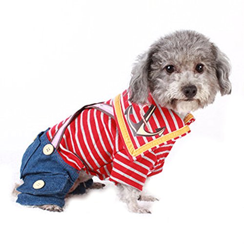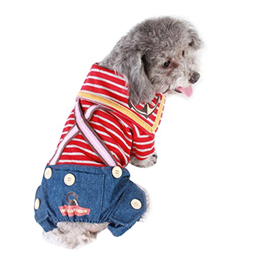 (NACOCO)/Pet Supplies/Apparel Accessories/DIRECT FROM USA/NACOCO Cute Nautical Dog Clothes,t Shirt and Jeans, Red/white Stripes Demin,spring/summer (L)