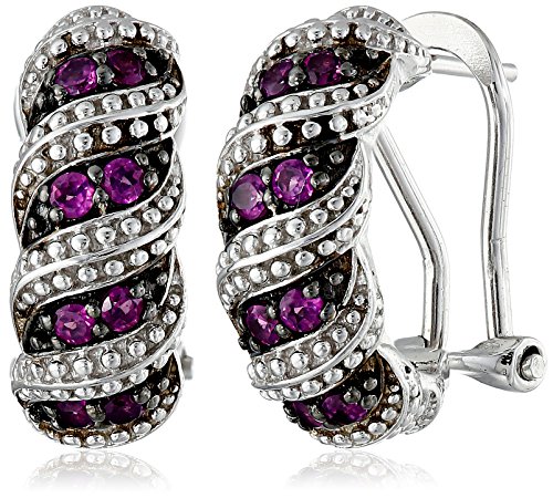 Rhodolite Garnet Omega Back Swirl Earrings in Sterling Silver