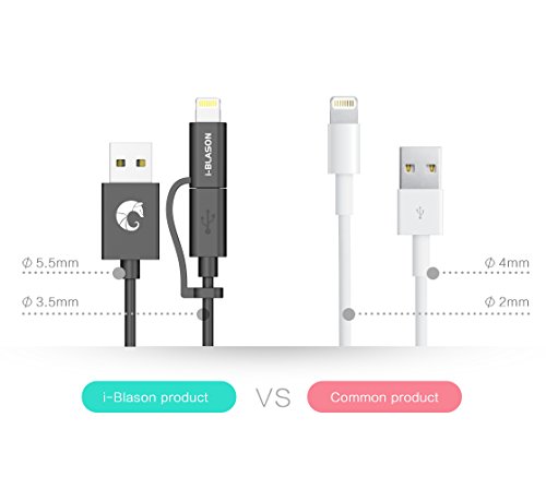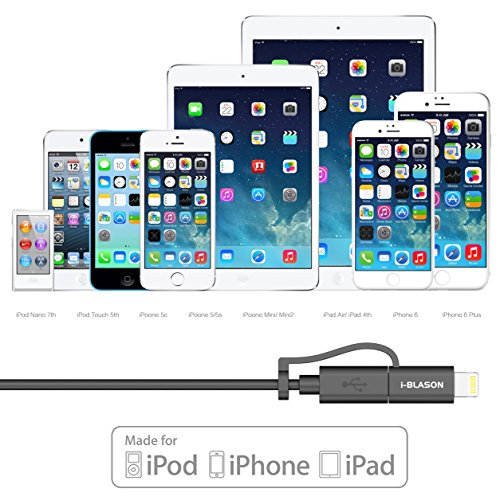 Lightning Cable, i-Blason Lightning to USB Cable [2 in 1 Combo] 3ft / 0.9m for iPhone 6 / Air /5s / 5c / 5, iPad Air / mini / mini2, iPad 4th generation, iPod 5th generation, iPod nano 7th generation/Battery Case / Galaxy Note /Galaxy S/ LG G3, G4/ HTC On