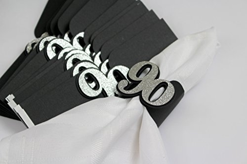 -. Brand : All About Details -. Color : Black, Silver -. EAN : 0016463345350 -. Feature : Handcrafted and made up of quality card stocks; Glitter doesn't shed / Adorable detail in your table setting that will surely compliment your 90th Birthday or 90th anniversary / Each pack includes 12 napkin holders with 2 inches in width / Each napkin holder requires minor assembly and can go up to a maximum 7in circumference / Shipped in flat, MINOR ASSEMBLY IS REQUIRED -. Label : All About Details -. Manufacturer : All About Details -. Model : NHO90NHBSIL -. PackageQuantity : 1 -. ProductGroup : Kitchen -. ProductTypeName : KITCHEN -. Publisher : All About Details -. Studio : All About Details -. Title : All About Details Black & Silver 90 Napkin Holders, Set of 12 -. UPC : 016463345350