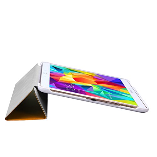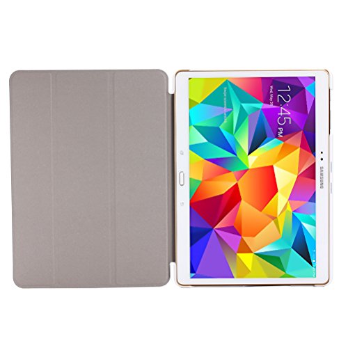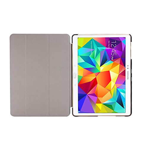 -. Feature : Designed Specifically for Samsung Galaxy Tab S 10.5 inch tablet (2014 June Sale,SM-T800/SM-T805). / Open the smart cover, and tablet magically wakes up. Close it, and tablet automatically goes to sleep. / Quality PU leather carefully crafted, elegant appearance, comfortable feel. / Accurate openings will not affect any key operations and basic functions, such as synchronous, charging, headphones etc. / Creative fold front cover design, can fold as a stable stand for movies watching or enter text.