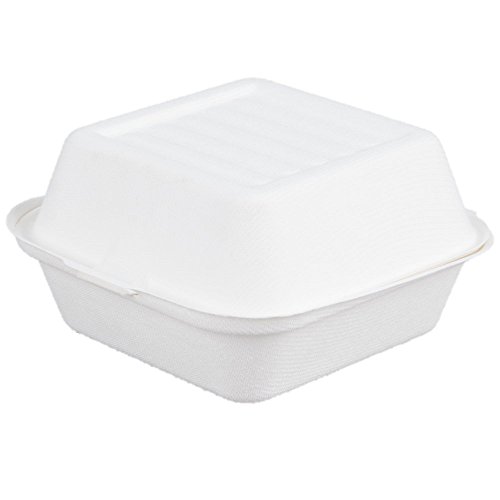California Containers - Take Out Boxes Clamshell Hinged Biodegradable To Go Food Containers - 6"x6" in. 50 Count. - White