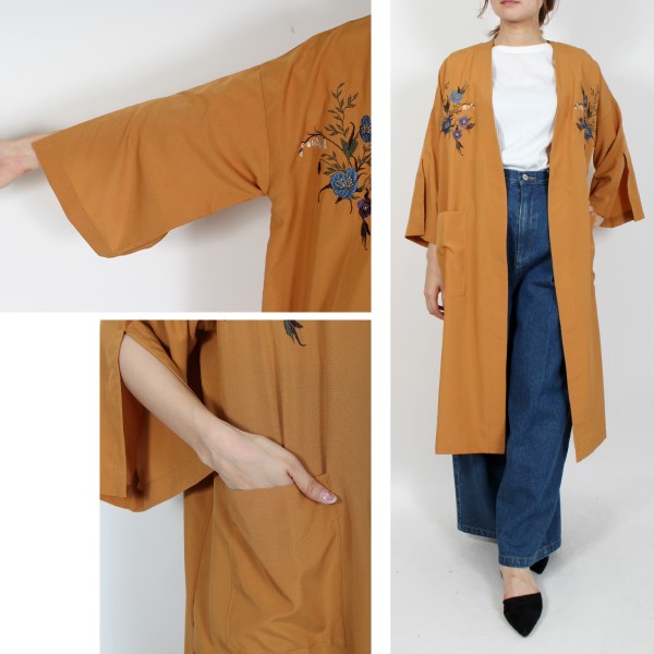| 実寸 | 着丈:105cm、肩幅:64cm、バスト:120cm、袖丈:33cm、袖口:40cm、裾周り:130cm |