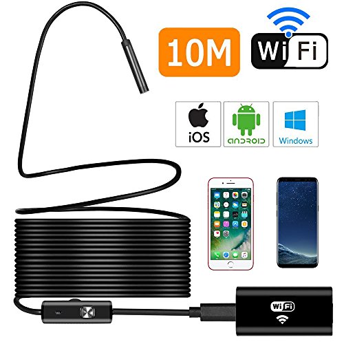 Wireless Endoscope WiFi Borescope Rigid Inspection Camera 2.0 Megapixels HD Snake Camera for Android and IOS Smartphone iPhone Samsung Tablet (10M)