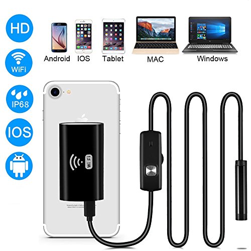 IP68 Waterproof WiFi Borescope: Featuring IP68 waterproof camera probe and 2 Megapixels HD camera allows it to work well in sewer or underwater.It offers you a wonderful experience of recording a HD video in AVI format and snapshot image in JPEG format
