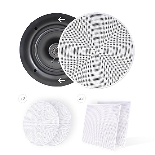 The Pyle PDIC56 two-way dual speakers deliver stereo sound to any room in your home or office without cluttering floor space. Each unit in the pair measures 5.25" diameter and come equipped with .5" high compliance polymer tweeter for a full, rich sound. Speakers are made of environmentally friendly ABS material and include stain resistant grills. System comes with changeable round and square grill covers and cut-out template for easy and quick installation. They mount flush for a clean look on walls or ceilings. Achieve more wide-ranged sound performance and add audio to any room with the PDIC Dual Stereo Speaker Systems.Feature