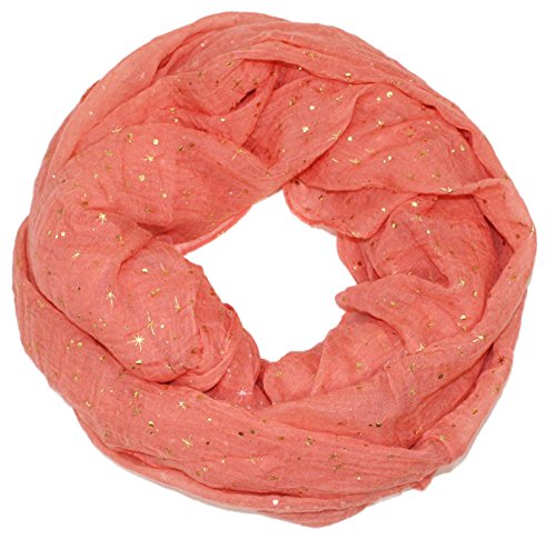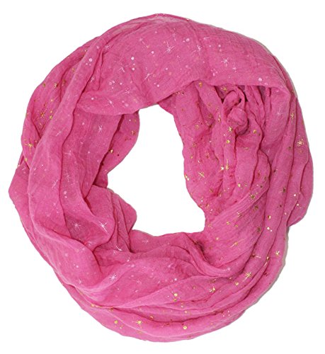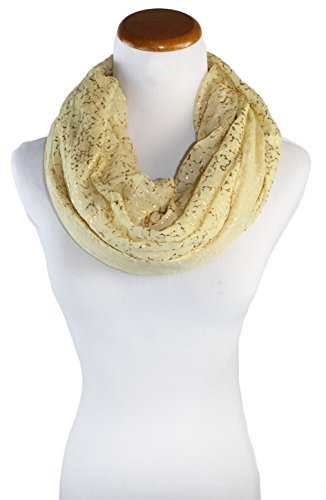 Product DescriptionSplatters of gold add some shimmer to this gauzy feel infinity scarf0