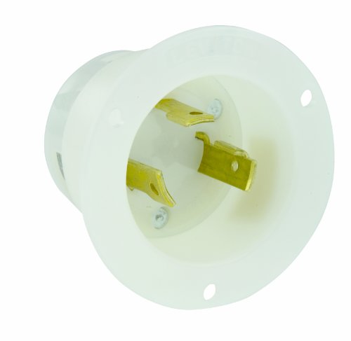 Leviton 2615 30 Amp, 125 Volt, NEMA L5-30P, 2P, 3W, Locking Flanged Inlet , Industrial Grade, Grounding, White