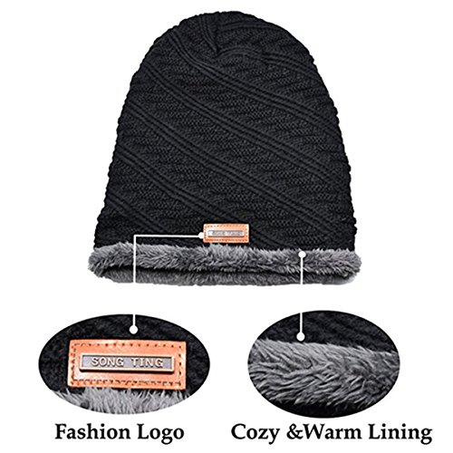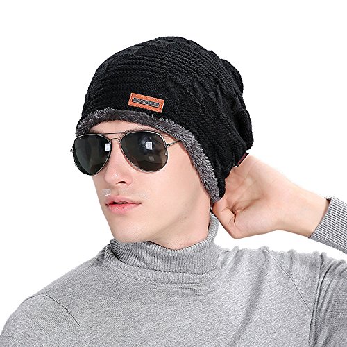 WOZHIFU Men Soft Lined Thick Wool Knit Skull Cap Warm Winter Slouchy Beanies Hat