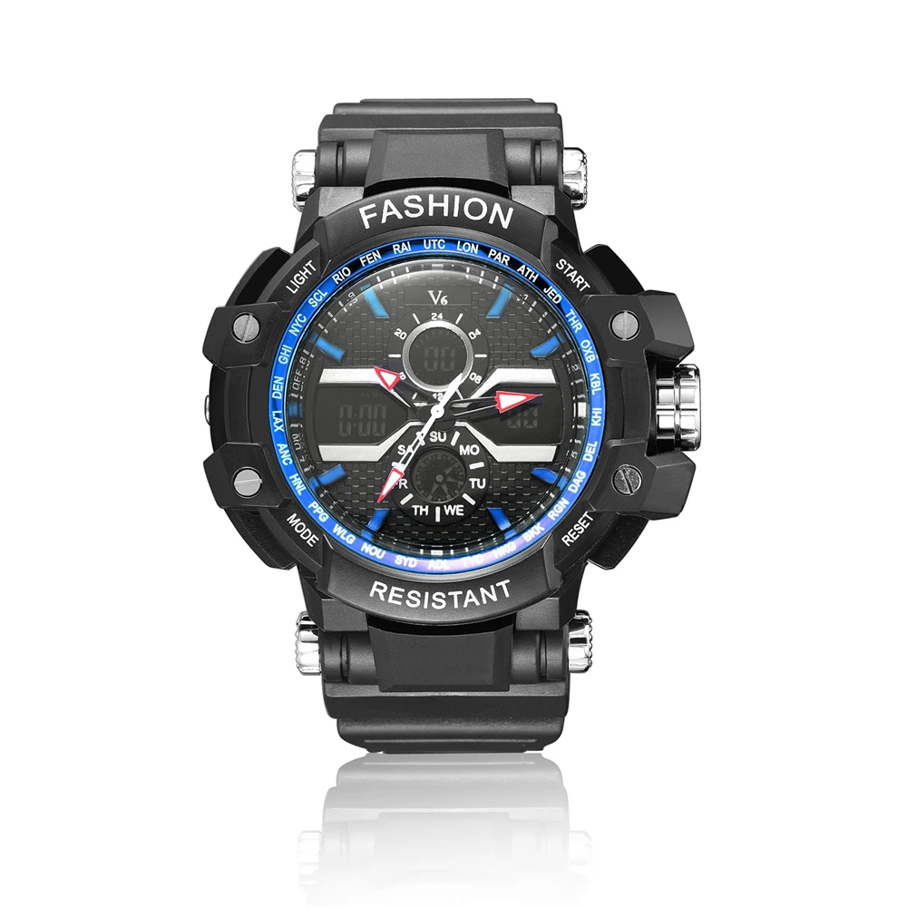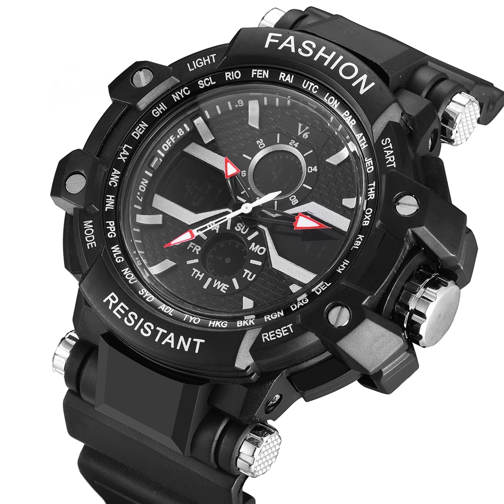 Feature:Back Light,LED display,Auto Date,Chronograph,Multiple Time Zone,Week Display,Stop Watch