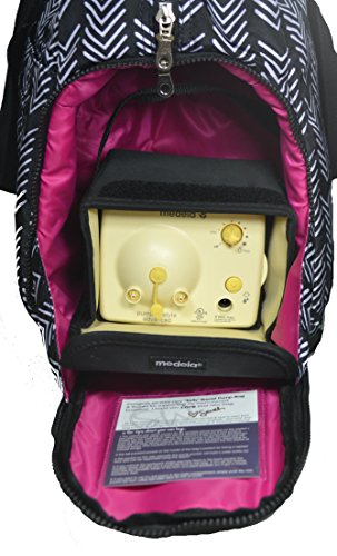Extra tall breast pump pocket; only designer breast pump bag on the market with a pump pocket capacity for hospital-grade pumps like the Medela Symphony (and fits all other portable breast pumps too!)