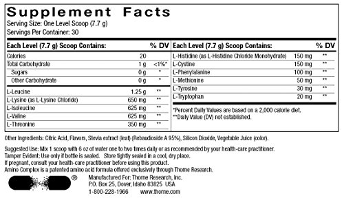 Thorne Research - Amino Complex - Amino Acid Powder for Sports Performance - NSF Certified for Sport - Berry Flavor - 8.1 oz