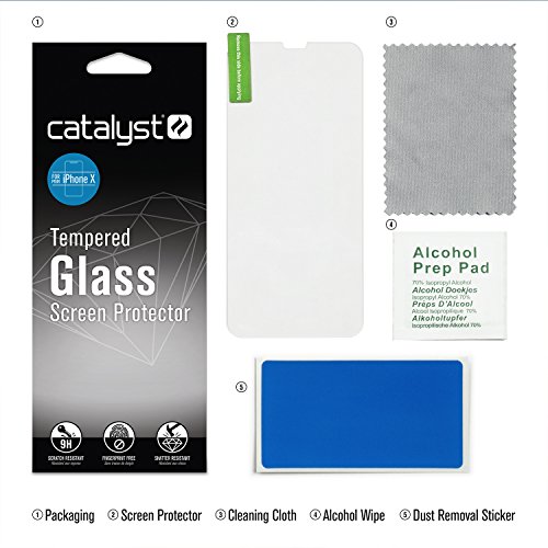 -. Title : iPhone x Screen Protector by Catalyst [Tempered glass, Shatter Proof, HD Clear Scratch Protection, 3D Touch, Bubble free Easy Install] Apple iPhone 10 screen film + Cleaning Pad, Dust removal sticker