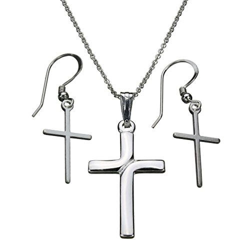 -. Title : Sterling Silver Modern Cross Pendant, Earrings, Cable Chain Necklace