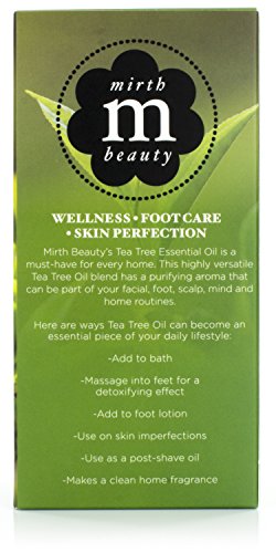 Mirth Beauty Tea Tree Essential Oil. Detoxifying oil for bath, feet, skin, post-shave, home fragrance. Large 1oz (30ml) dropper bottle.