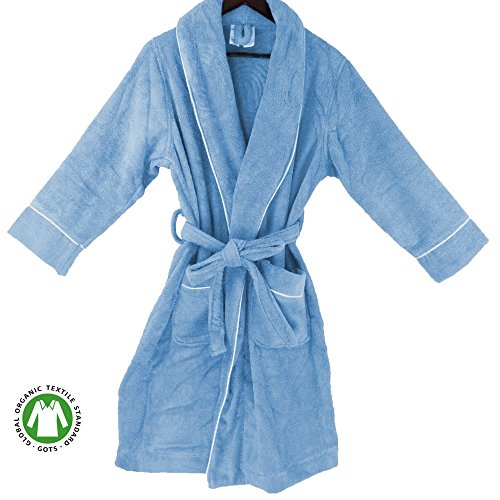 Studio : OrganicTextiles Publisher : OrganicTextiles Product Description Certified Organic bath robe made in unisex style. 100% ring spun long staple organic yarn processed to meets the GOTS (Global Organic Textile Standards). The aerospin process makes if yarn smooth, plush and absorbent. No toxic additive (beaches, dyestuff, surfactants perfumes, etc.,) Just pure and natural organic bath robes. Organic cotton havesting and processing is fair trade complaint. Robes are durable for everyday use and get softer over use. Being made from woven terry, they are stronger and lot more durable than the knit terry robes. Robes have full sleeves that can be rolled to ¾ size and extend over knee to be a full-size robe. The classic shawl-collared silhouette wraps cozily and has adjustable belt and side pockets. Large deep pockets also act as cozy warmers in a spa. Available sizes are XS/S, S/M, L/XL. 100% organic cotton grown, woven and sewed in India. 0
